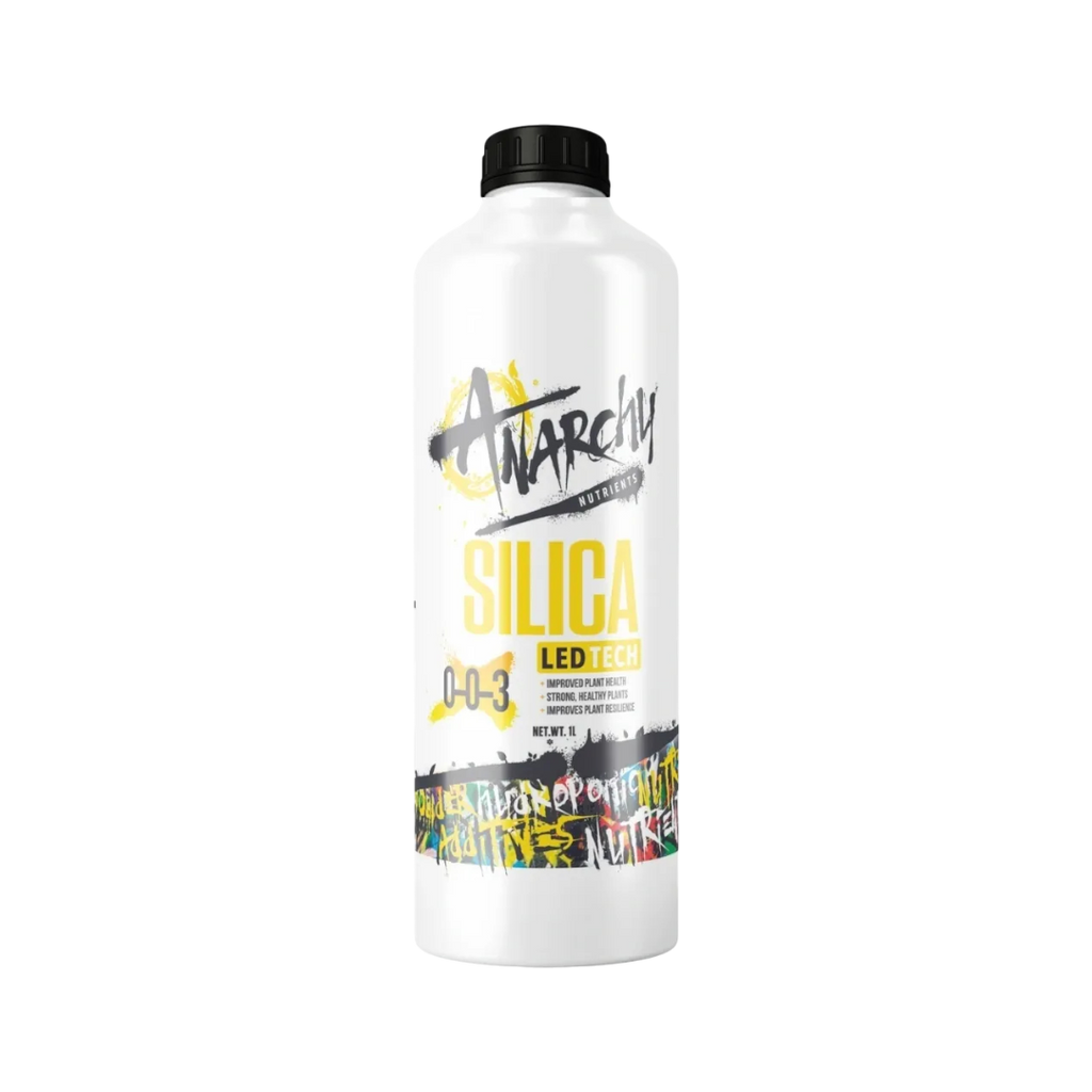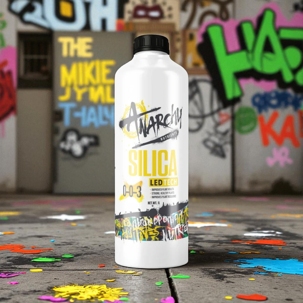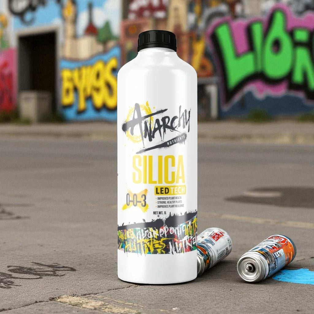 Anarchy Silica is a highly effective blend designed to improve plant structure, yield, and overall health by combining three distinct forms of silica: Potassium Silica, Ortho Salicylic Acid, and Meta Salicylic Acid. In addition to these powerful compounds, Anarchy Silica also contains Amino Acids, Fulvic Acid, and Bio Stimulants, creating a comprehensive nutrient solution that ensures optimal plant performance and resilience.